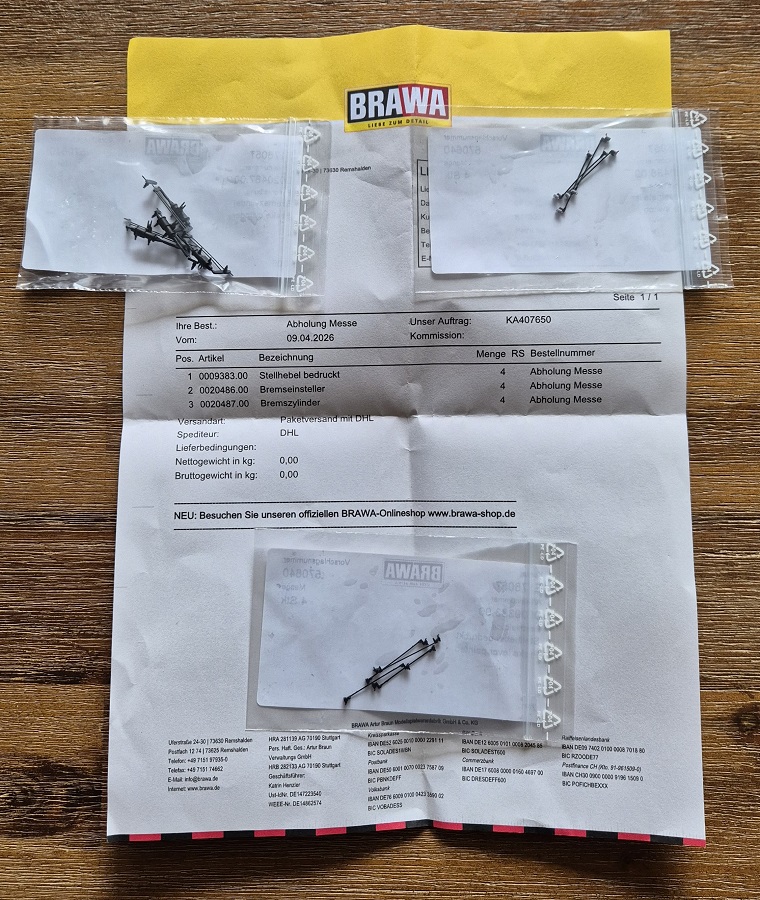 Two days before the Messe, I received a kind email from Petra Illg, that I could pick the batch up at the Brawa stand in Dortmund.